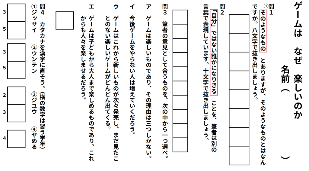 説明文ってなかなか子どもたち読みたがらないですよね。でも確かに、題材が少し難しかったり興味なかったりするものが多いとそうなってしまいます。そういうわけで、子どもたちの興味をひきやすい題材の説明文問題を作ってみました。ぜひご活用ください。