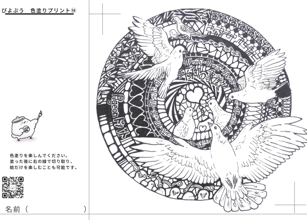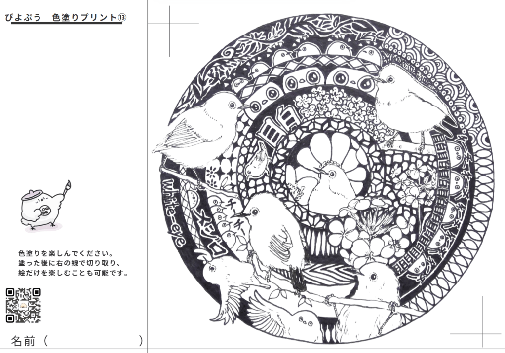 鳥さんたちがモチーフのデザイン画、自由にぬりぬりしていただければと思います。