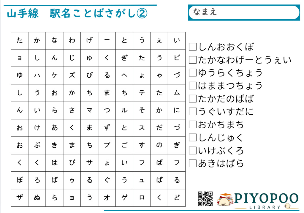 ↑こちらでは漢字verの山手線等の言葉探しプリントを用意していますので、